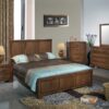 Presenting the Eden Bedroom Suite, where modern design meets classic artistry. This comprehensive collection features a queen-sized bed adorned with a bold leather-upholstered headboard, embellished with geometric designs for both comfort and aesthetic allure. Included are a large dresser with a matching mirror and two nightstands, all constructed from premium, dark wood with a sleek finish. The suite’s streamlined silhouettes and robust build provide lasting durability and a refined elegance to any bedroom setting.